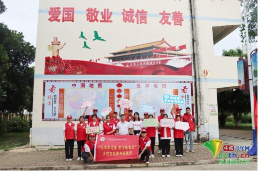 图为实践团成员到达扶绥县岜盆乡初级中学。中国青年网通讯员张露供图