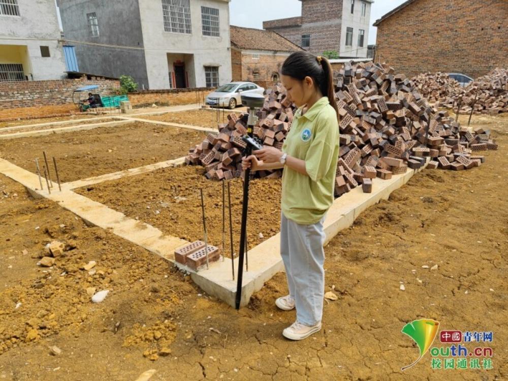 图为实践团成员在扶绥县岜盆乡弄廪村参与宅基地测量工作。中国青年网通讯员张露供图