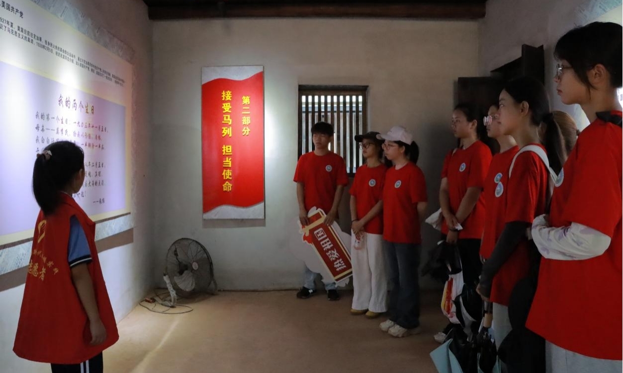 参观过程中,最让人动容的是张报的一首小诗《我的两个生日》,“我有两次生日,一次是母亲莫李氏赋予我的,一次是我加入中国共产党时的……”,小讲解员指着墙上印有《我的两个生日》的展牌,语气认真。这句滚烫的话语,让在场的实践团成员们都深刻体会到一位革命者将个人生命与党的事业紧密相连的赤子之心。随着讲解深入,张报在异国他乡传播革命火种、在艰难处境中坚守信仰的故事,让“爱国”二字从抽象的概念化为具体的行动,深深烙印在青年学子心中。