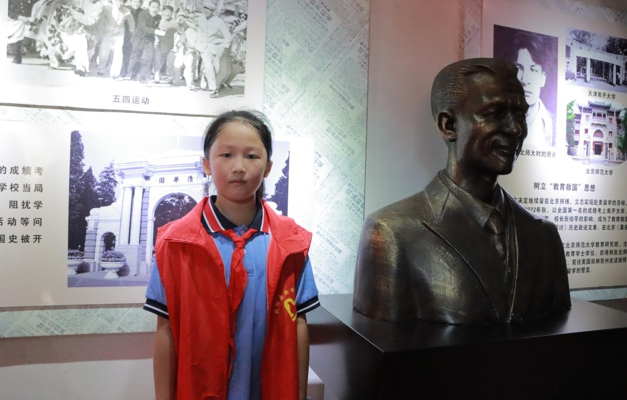 Δ图为小解说员与张报铜像合影