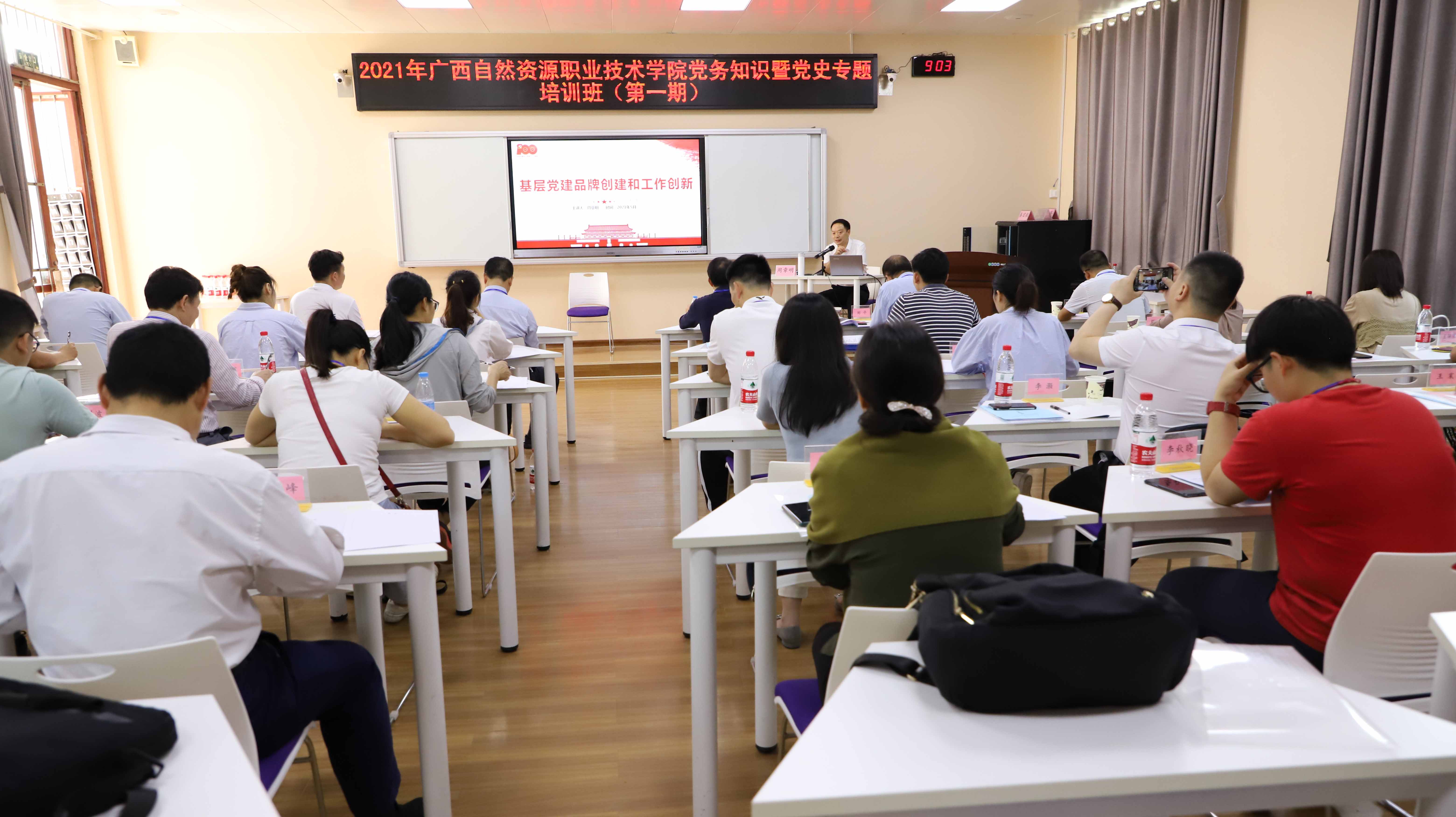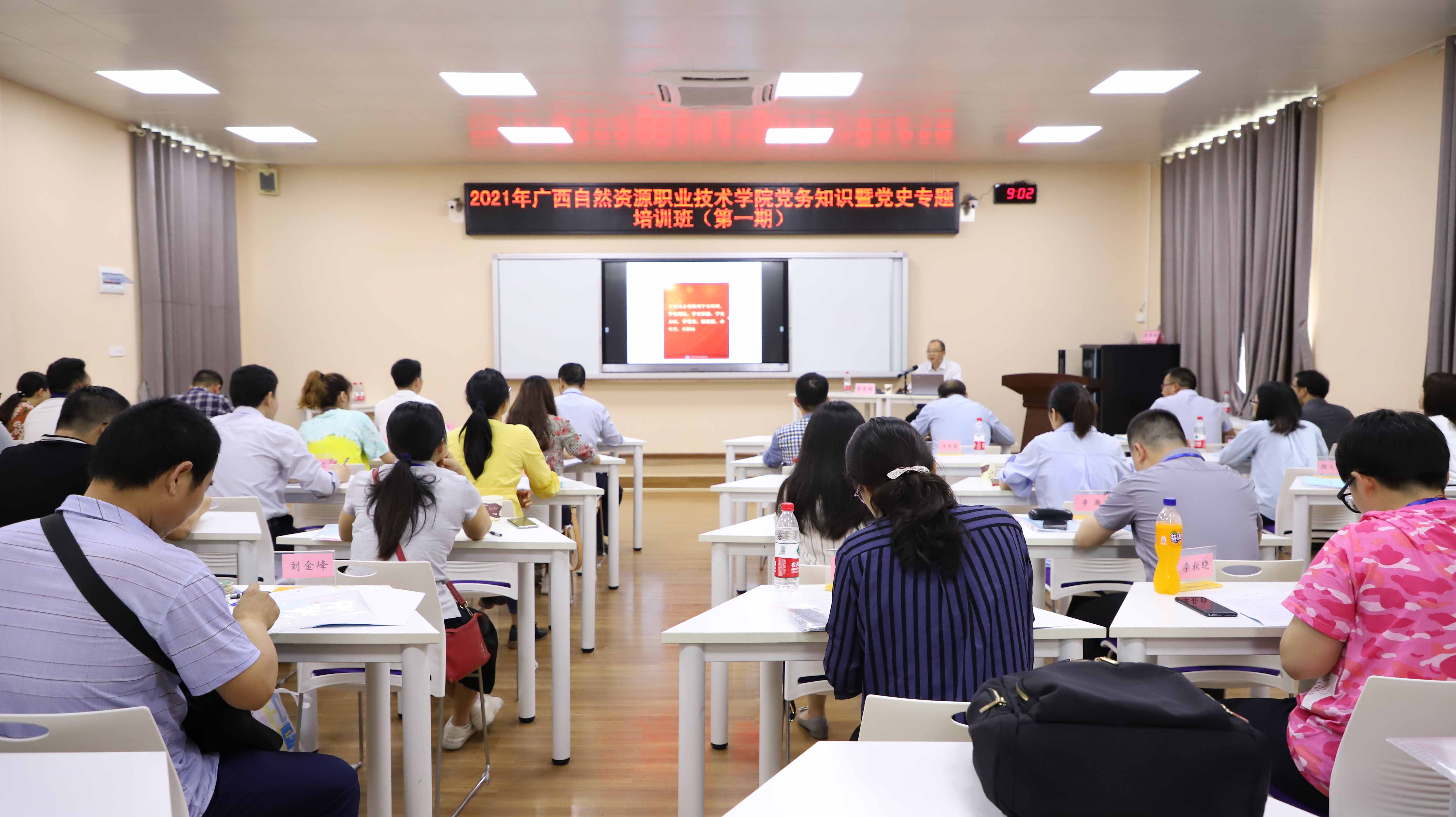 为深入学习贯彻习近平总书记在党史学习教育动员大会上的重要讲话精神,引导全体党员干部把党的历史学习好、总结好、传承好、发扬好,2021年5月8日广西自然资源职业技术学院组织开展第一期党务知识暨党史专题培训班。广西自然资源职业技术学院副院长韦绍宁、副院长宇鹏、部分教职工党员、入党积极分子参加本次培训班。