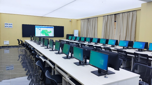 国土空间规划全过程指挥控制中心于2022年建立,实验室仪器设备先进,配备有55台电脑、智慧屏、图形工作站、大型显示屏等设备,搭建有国土空间基础信息教育平台、国土空间规划一张图数据中心、国土空间规划一张图数据中心和国土空间规划展示平台,配套有Auto Cad、Arc Gis、Photoshop、湘源控规、南方Cass、地形图制图软件、航空摄影测量软件、三维建模系统、倾斜三维测图软件等国土空间规划与测绘专业群相关的教学软件,搭配指挥控制大屏和系统。