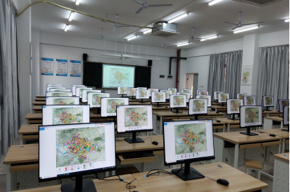 国土空间规划管理审批管理综合实训室于2022年建立,实验室仪器设备先进,配备有100台电脑、图形工作站、电子白板等设备,搭建有国土空间基础信息教育平台、国土空间规划一张图数据中心、国土空间规划一张图数据中心,配套有Auto Cad、Arc Gis、Photoshop、湘源控规、飞时达软件、南方Cass、地形图制图软件、影像测图软件、自动建模系统、垂直三维测图软件、倾斜三维测图软件等国土空间规划与测绘专业群相关的教学软件。