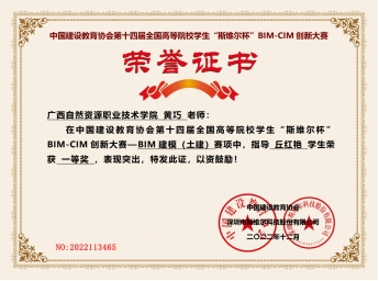 8、自然资源工程系学子在第十四届全国高等院校学生BIM-CIM创新大赛中荣获个人一等奖2项、二等奖1项、三等奖2项。