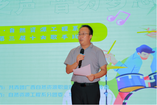 比赛伊始,自然资源工程系党总支书记、系主任王根伟为本次大赛致辞,他先是向筹备本次赛事的工作人员、评委致以衷心的感谢,并向勇敢站上舞台的同学们送上最热烈的掌声。他指出,本次大赛是展示同学们的精彩技艺,丰富校园文化生活的一个亮丽舞台,衷心希望同学们能够在这个舞台上亮出自己的绝活,唱出自己的精彩,用心灵感受艺术,用艺术点燃激情,用激情创造辉煌。