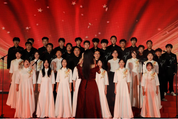 比赛以集体合唱形式展开。 2025级新生代表及新生班主任、辅导员共同以歌声凝聚力量,用艺术传递青春热情,精心编排了《歌唱祖国》《强军战歌》等经典曲目,融入朗诵、乐器伴奏等创意元素,现场掌声不断。