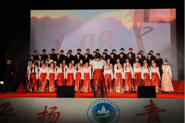比赛以集体合唱形式展开。 2025级新生代表及新生班主任、辅导员共同以歌声凝聚力量,用艺术传递青春热情,精心编排了《歌唱祖国》《强军战歌》等经典曲目,融入朗诵、乐器伴奏等创意元素,现场掌声不断。